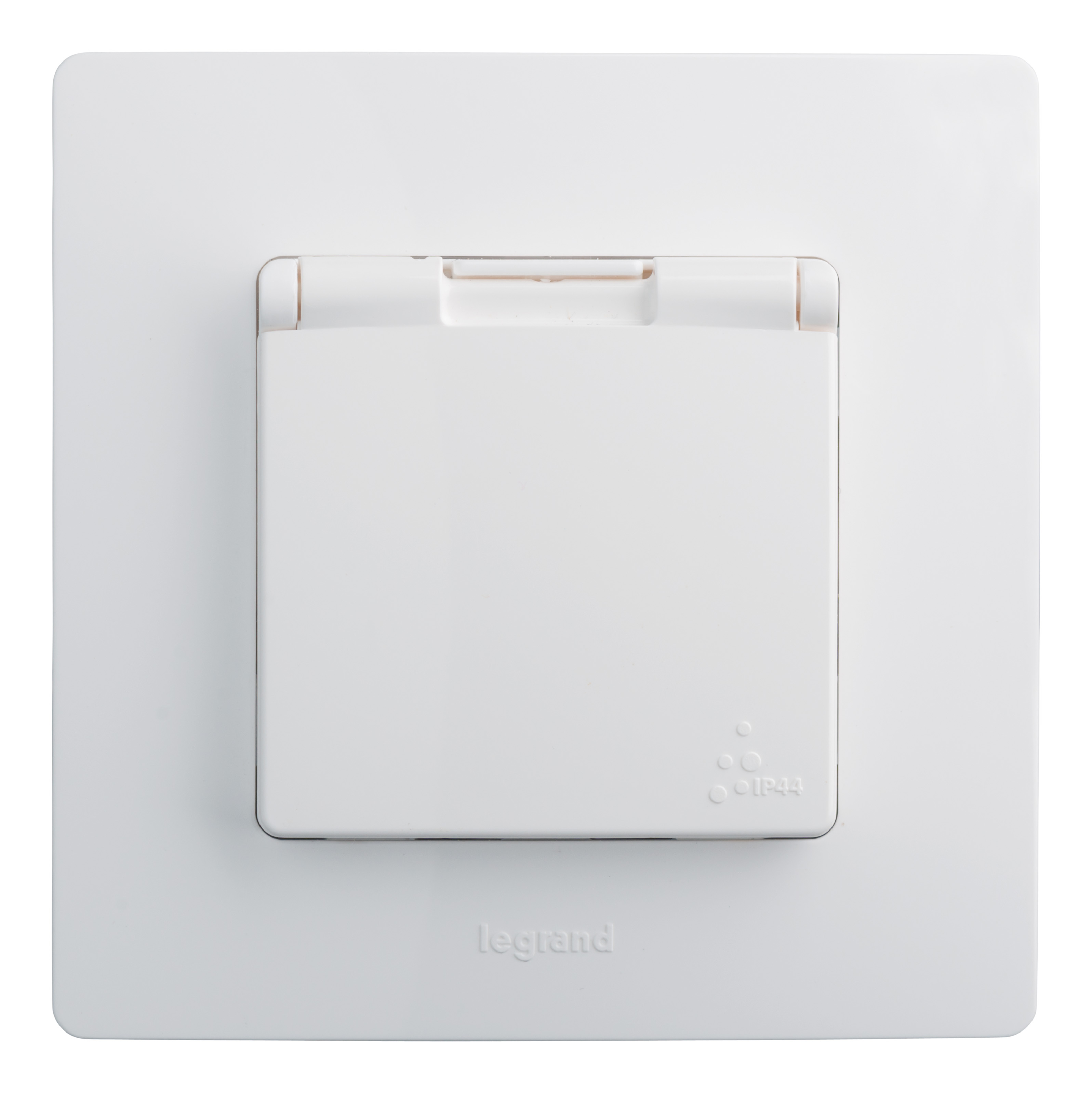 ETIKA Розетка 1-местная с заземлением с защитными шторками и крышкой IP44 16А белый